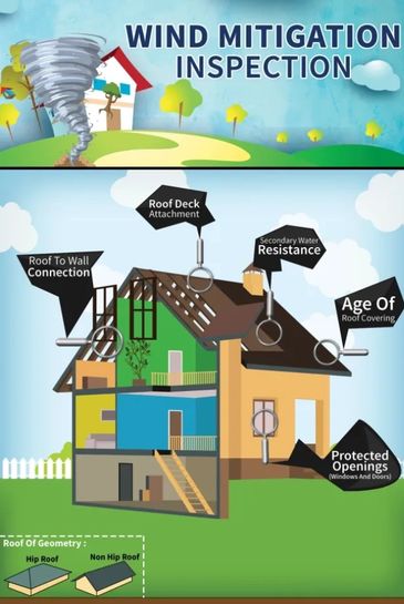 With wind mitigation inspections the areas of greatest concern are your roof and your openings (windows, doors, garages) Your inspector will look at a number of things including: